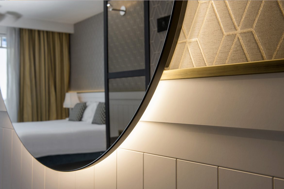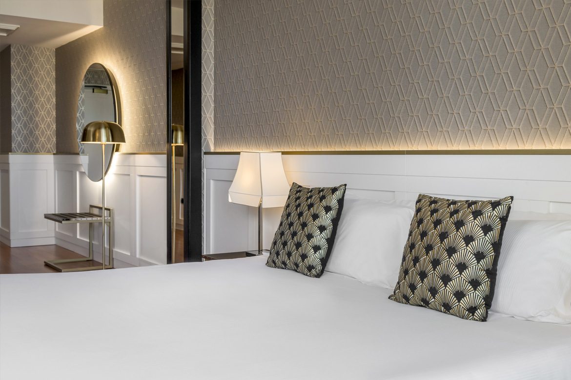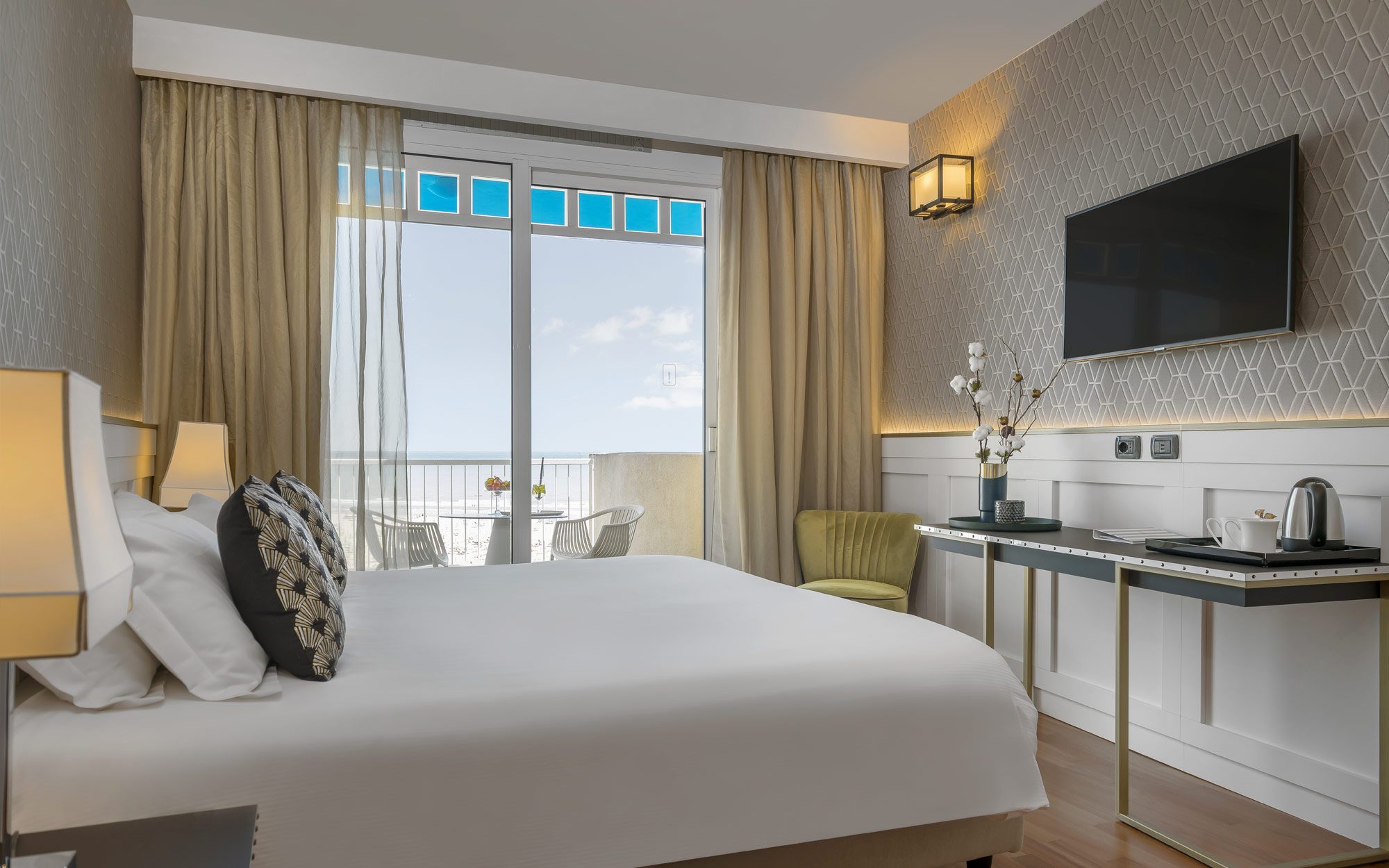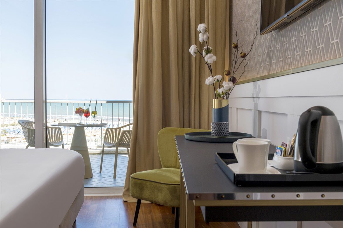 The Deluxe SeaFront View of the Hotel Savoia envelop you in unique settings, among the warmth of wood, the boiserie with geometric designs, the special wallpapers and the soft colors of the fabrics.