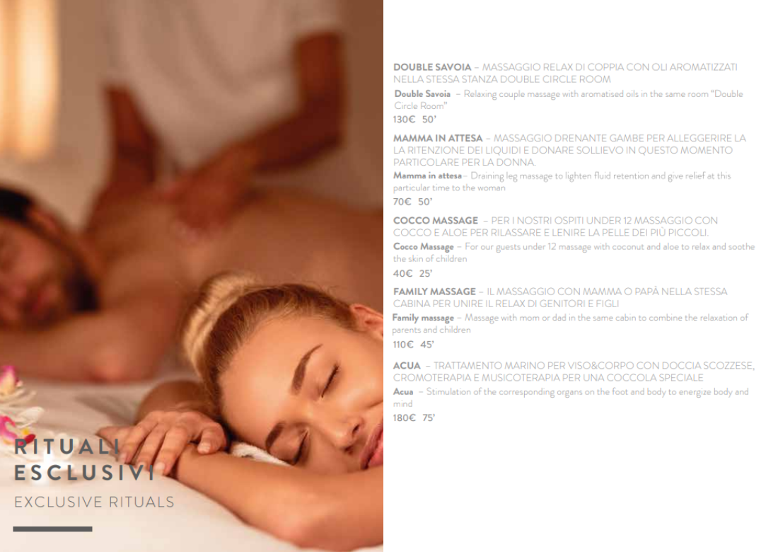 Il Savoia Spa, il nostro salotto dell’benessere vista mare, in un ambiente profumato di piacevoli essenze percorsi studiati per farti stare bene, ti dà la possibilità di regalare questa esperienza di benessere a chi vorrai.