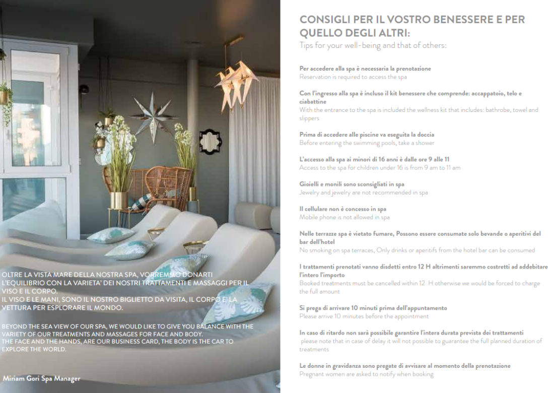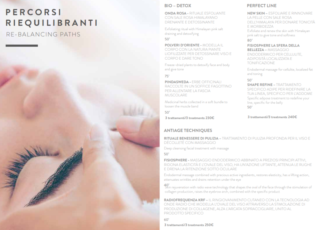 Oltre alla vista mare della nostra Spa, vorremmo donarti equilibrio e benessere, grazie alla varietà dei nostri trattamenti e massaggi.