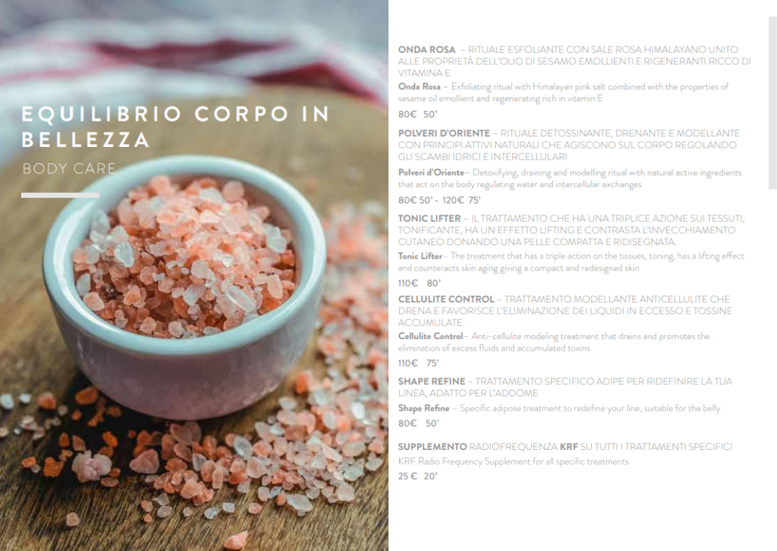 Offriamo trattamenti personalizzati, in base alle tue esigenze! Il nostro team di professionisti si prenderà cura del tuo tempo prezioso attraverso momenti speciali, rituali che coinvolgono viso e corpo.